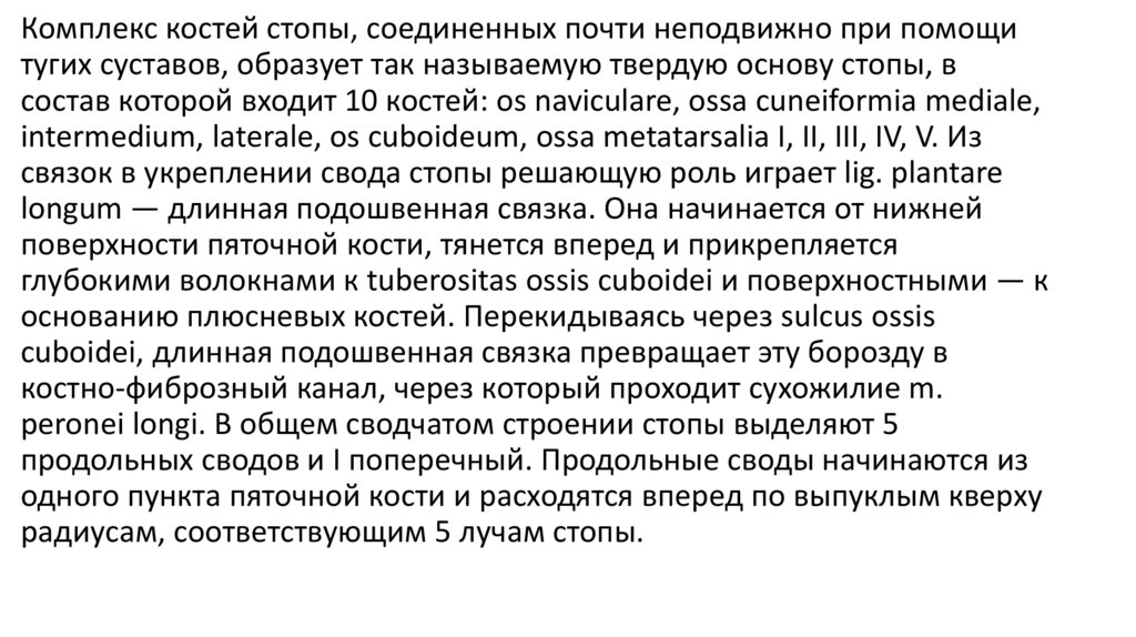 peronei longi. В общем сводчатом строении стопы выделяют 5