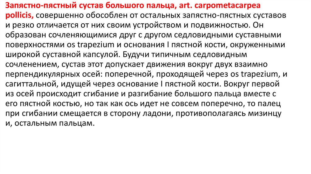 связочному аппарату похожи на аналогичные сочленения кисти. Движения в