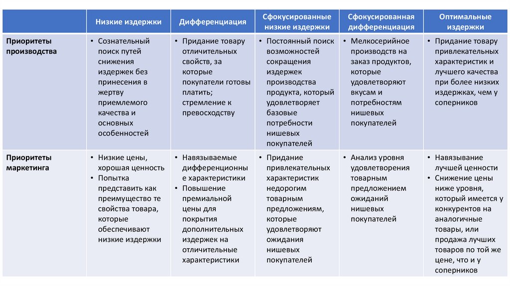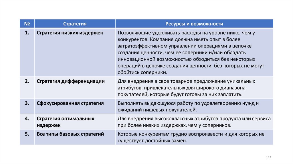 Суть стратегии в том, чтобы достигать устойчивого конкурентного преимущества, деля что-то,чего не делают конкуренты, или делая что-то, чего они не могут сделать.