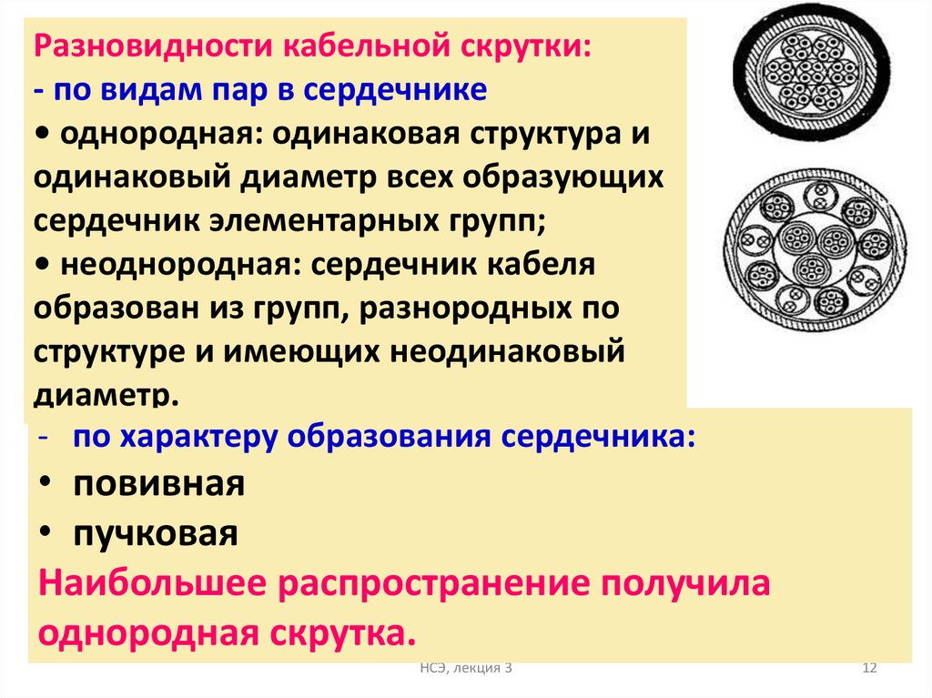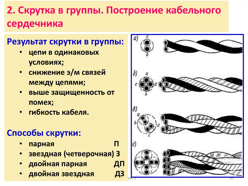 • 3 звездная скрутка в НЧ-кабелях и кабели зоновой связи;