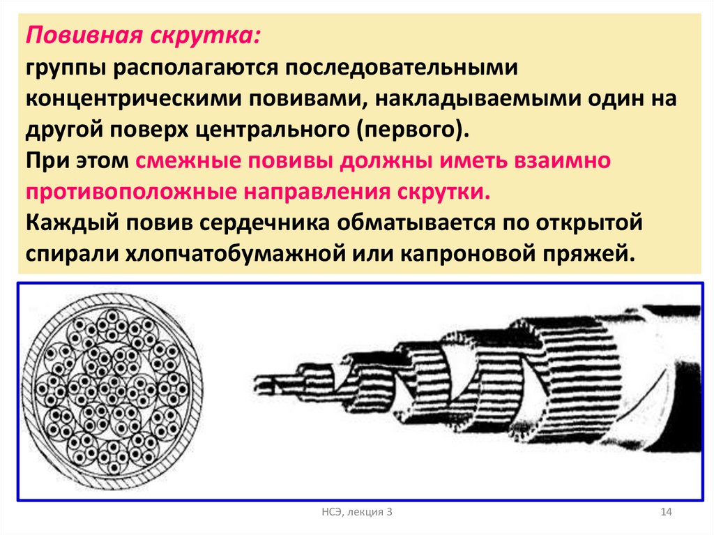 расположения жил в группе по всей длине кабеля.
