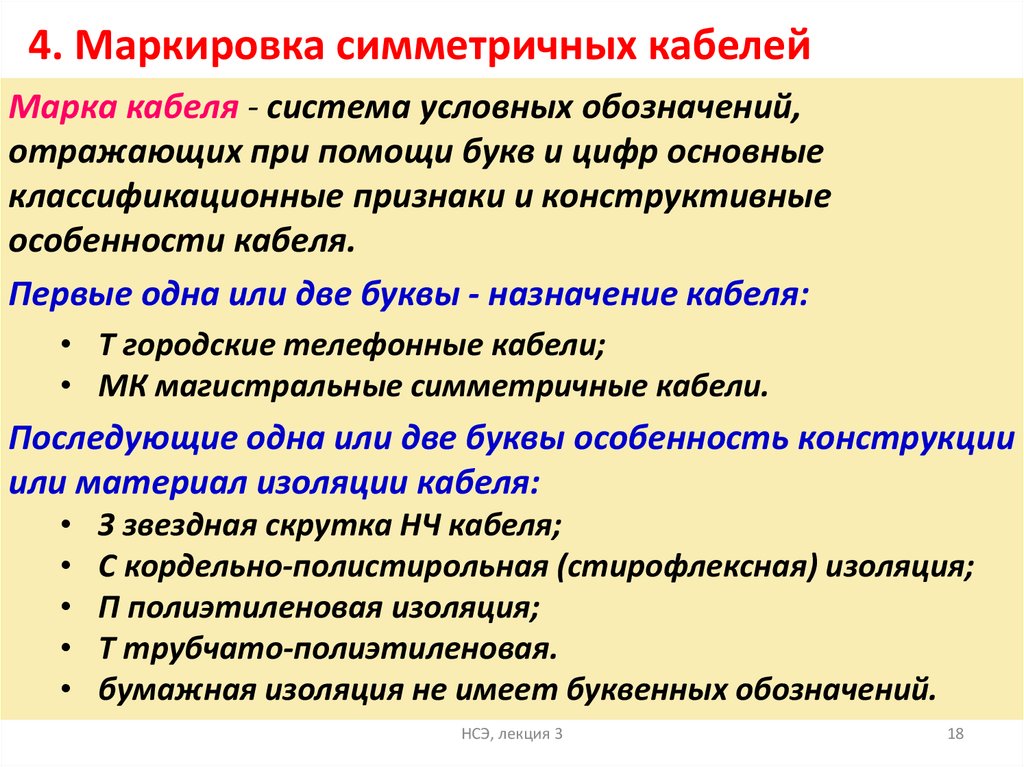 Первые одна или две буквы - назначение кабеля:
