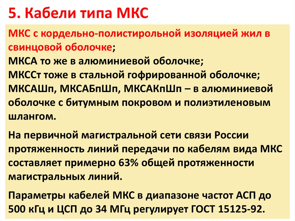 5. Кабели типа МКС.