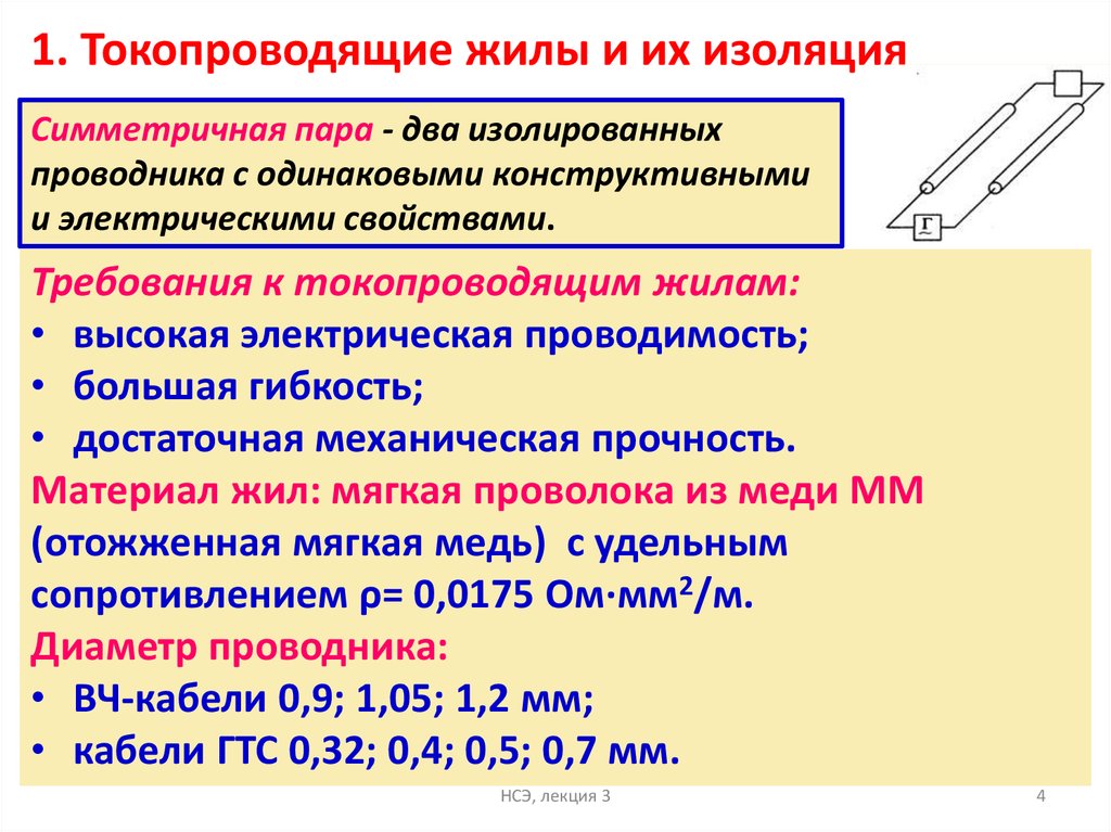 1. Токопроводящие жилы и их изоляцияСимметричная пара - два изолированных