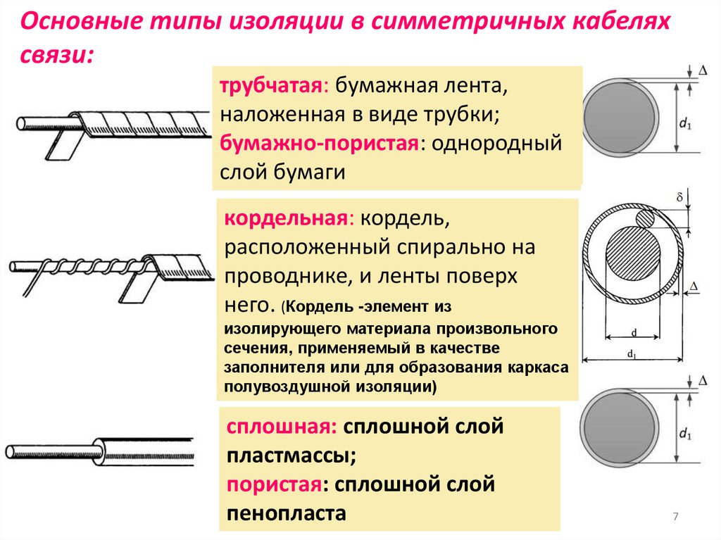 Основные типы изоляции в симметричных кабеляхсвязи: