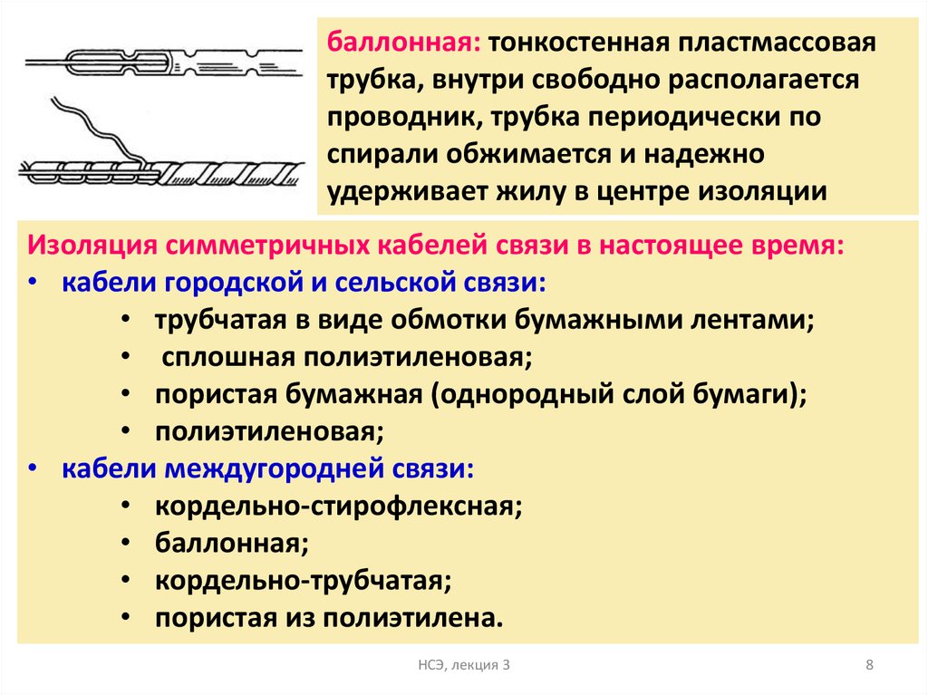 Изоляция симметричных кабелей связи в настоящее время: