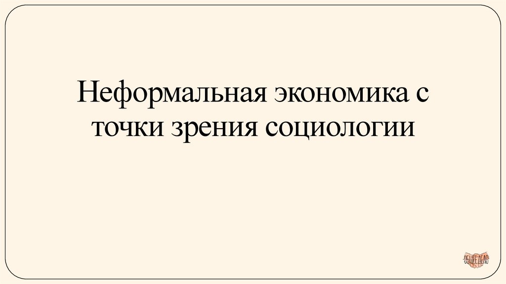 1. Неформальная экономика с точки зрения социологии