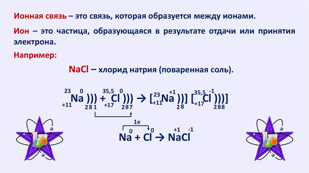 Ионная связь – это связь, которая образуется между ионами.Ион – это частица, образующаяся в результате отдачи или принятия