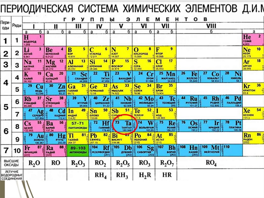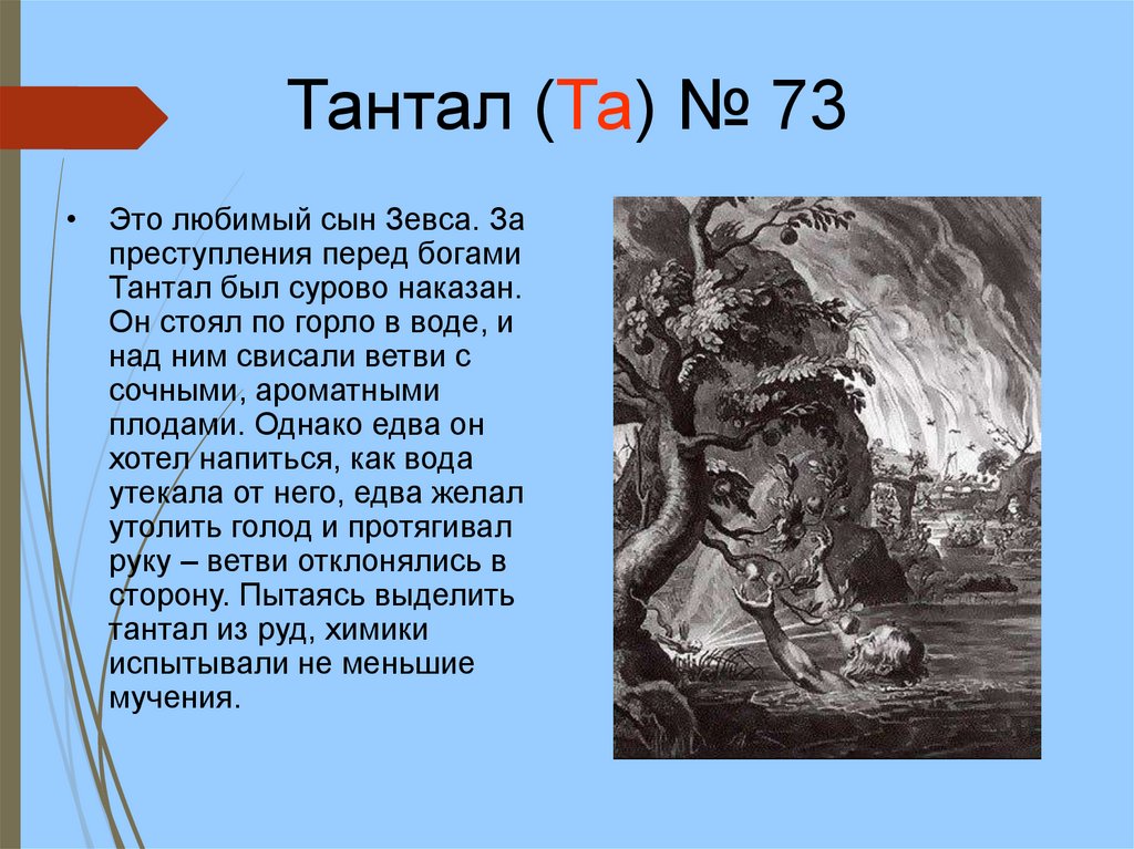 Тантал (Та) № 73• Это любимый сын Зевса. За
