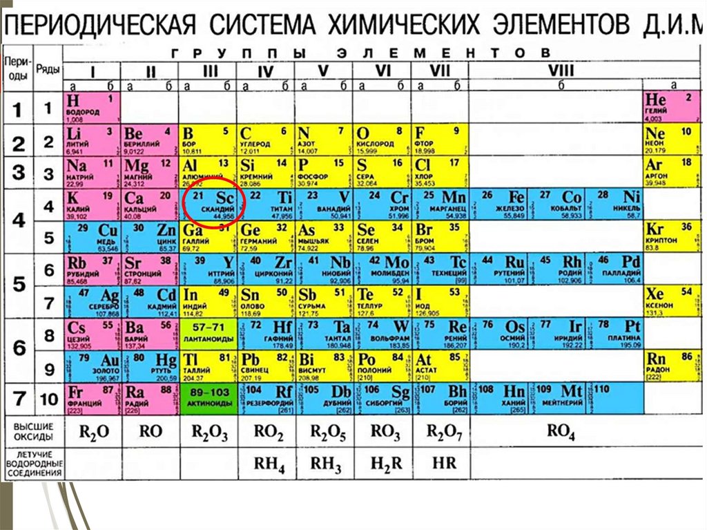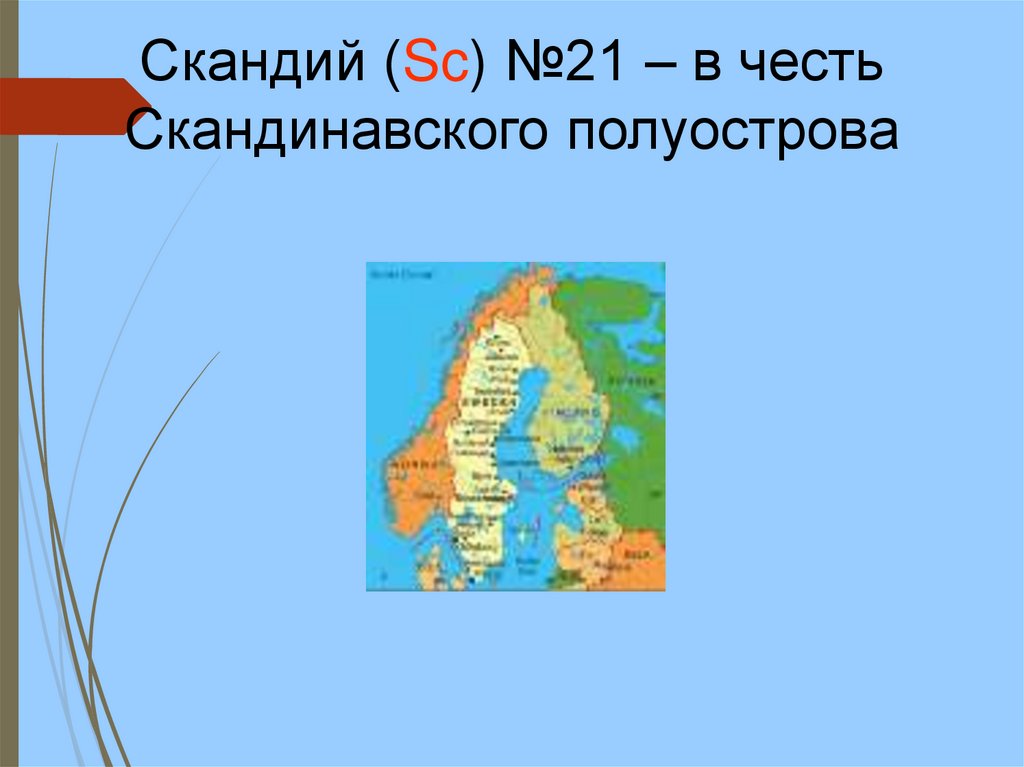Скандий (Sc) №21 – в честьСкандинавского полуострова