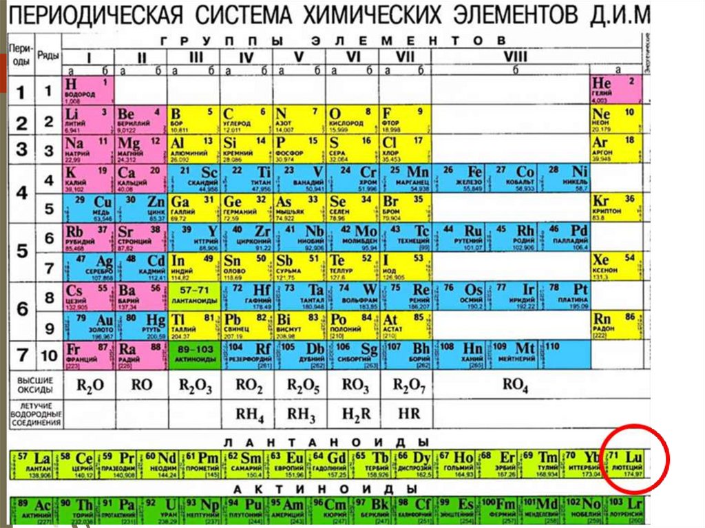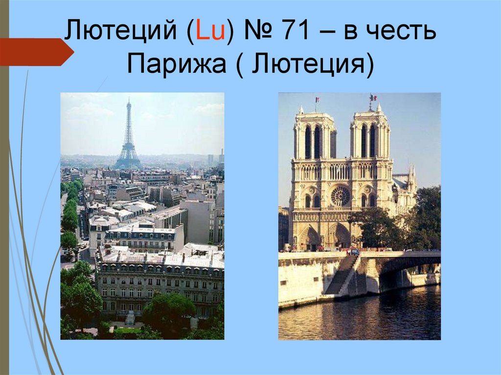 Лютеций (Lu) № 71 – в честьПарижа ( Лютеция)