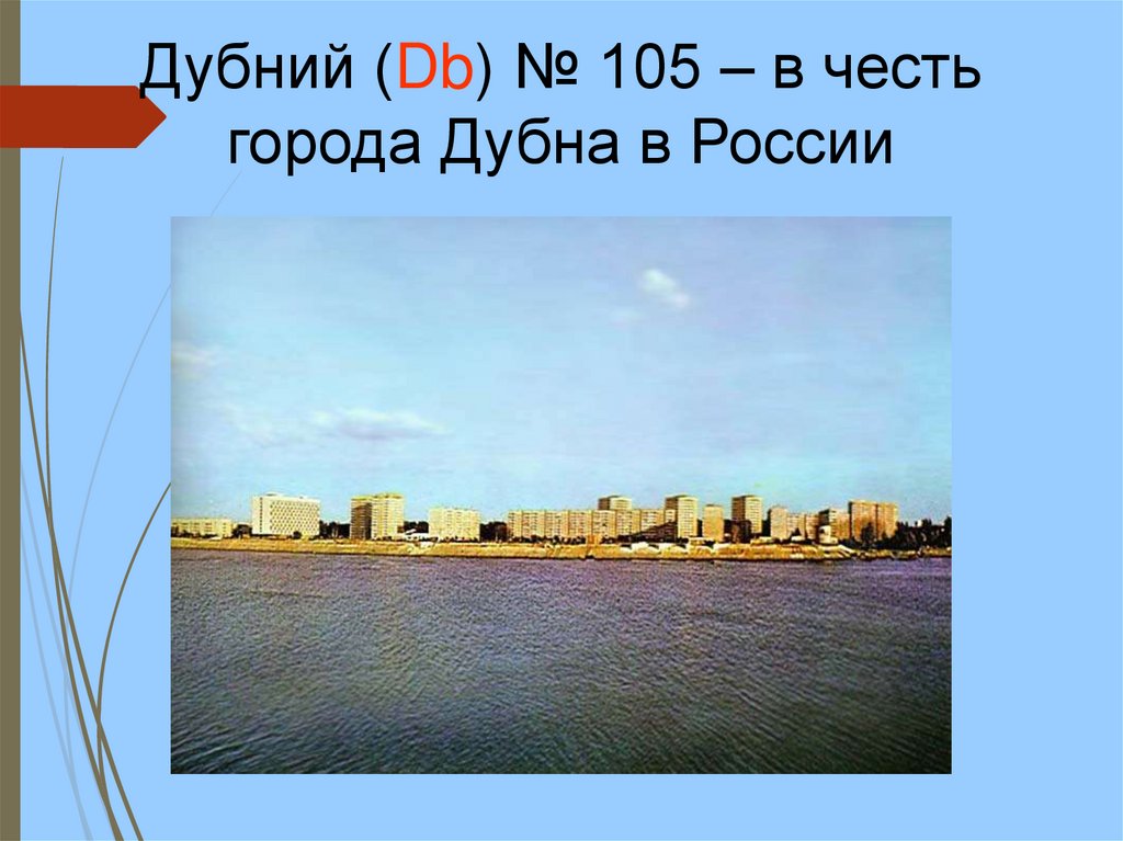 Дубний (Db) № 105 – в честьгорода Дубна в России
