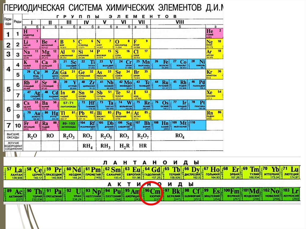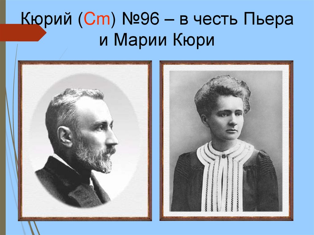 Кюрий (Cm) №96 – в честь Пьераи Марии Кюри