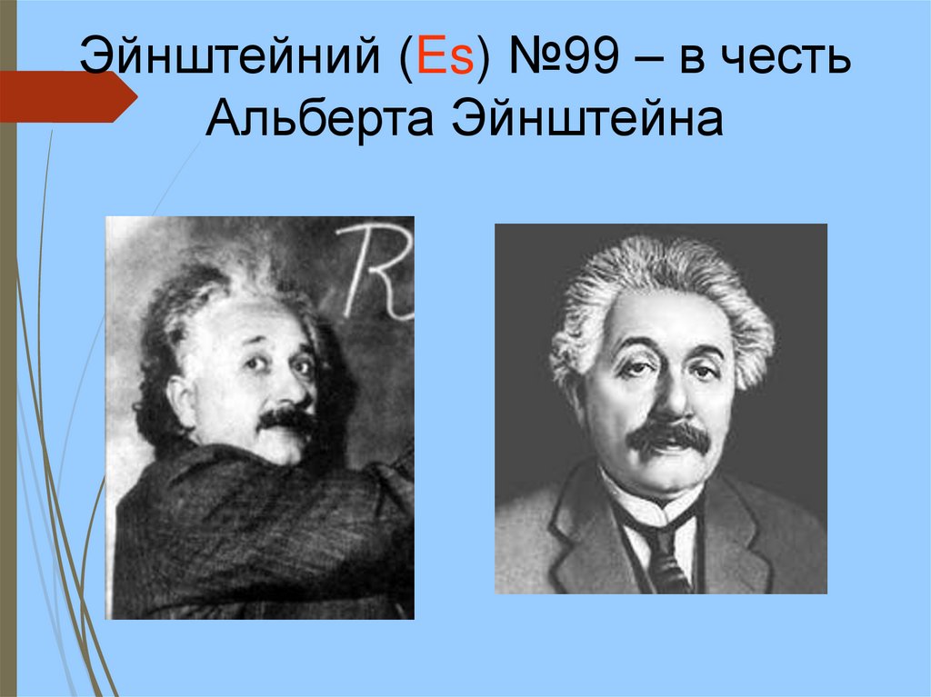 Эйнштейний (Es) №99 – в честьАльберта Эйнштейна