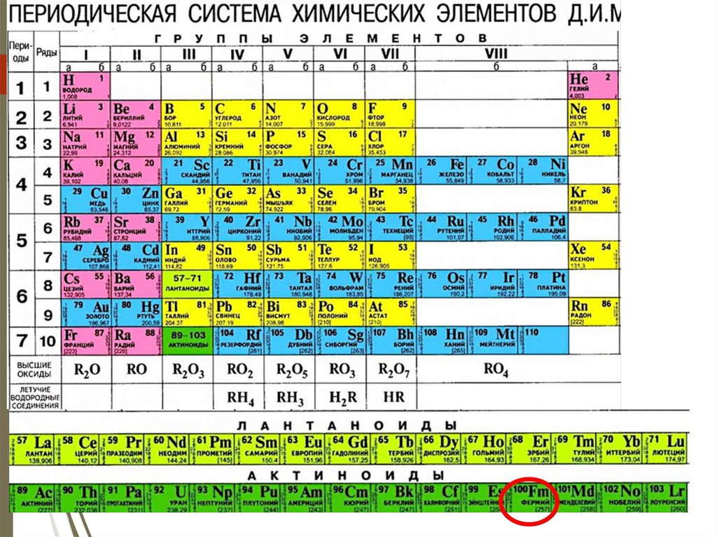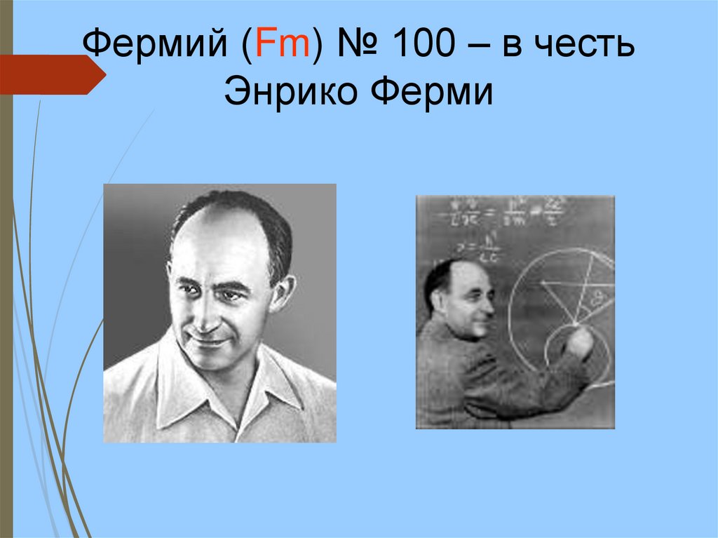 Фермий (Fm) № 100 – в честьЭнрико Ферми