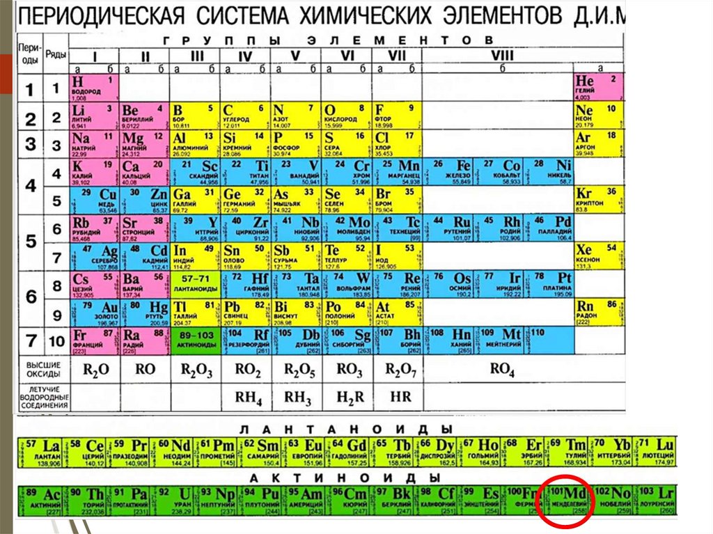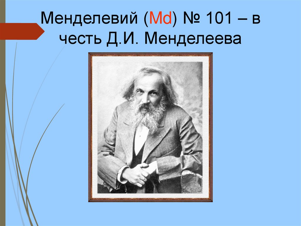 Менделевий (Md) № 101 – вчесть Д.И. Менделеева