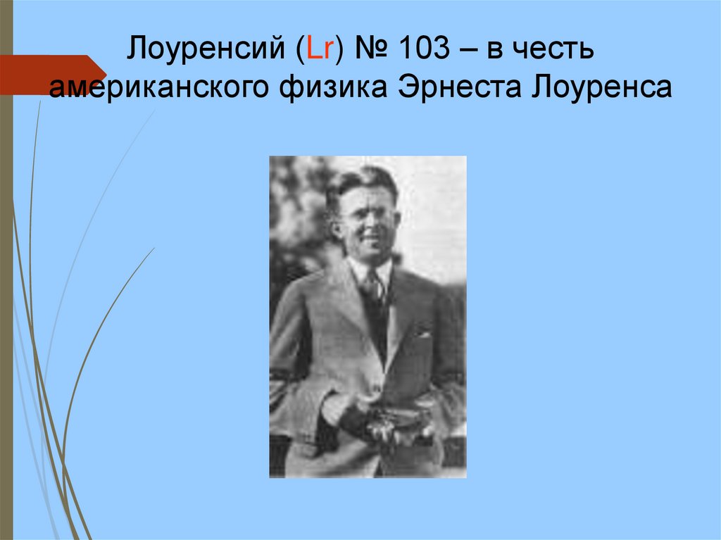 Лоуренсий (Lr) № 103 – в честьамериканского физика Эрнеста Лоуренса