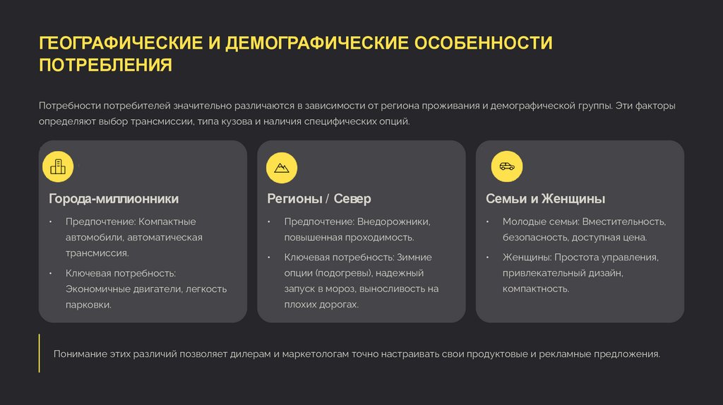 Потребности потребителей значительно различаются в зависимости от региона проживания и демографической группы. Эти факторы