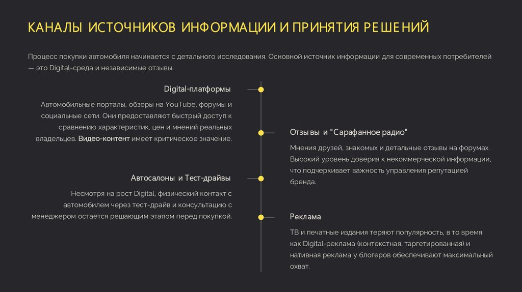 КАНАЛЫ ИСТОЧНИКОВ ИНФ ОРМАЦИИ И ПР ИНЯТИЯ Р Е ШЕ НИЙПроцесс покупки автомобиля начинается с детального исследования. Основной источник информации для современных потребителей