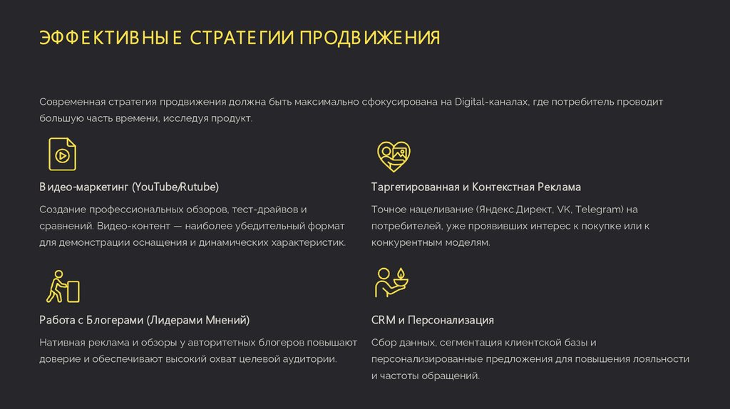 ЭФФ Е КТИВ НЫ Е СТРАТЕ ГИИ ПРОДВ ИЖЕ НИЯСовременная стратегия продвижения должна быть максимально сфокусирована на Digital-каналах, где потребитель проводит