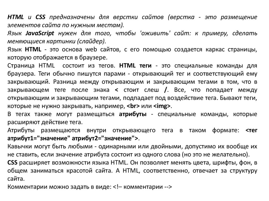 общем заниматься красотой сайта. А HTML, соответственно, отвечает за структуру