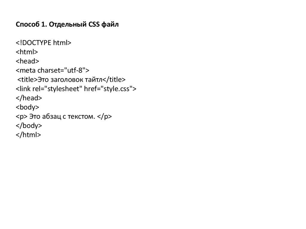 Способ 1. Отдельный CSS файл<!DOCTYPE html>