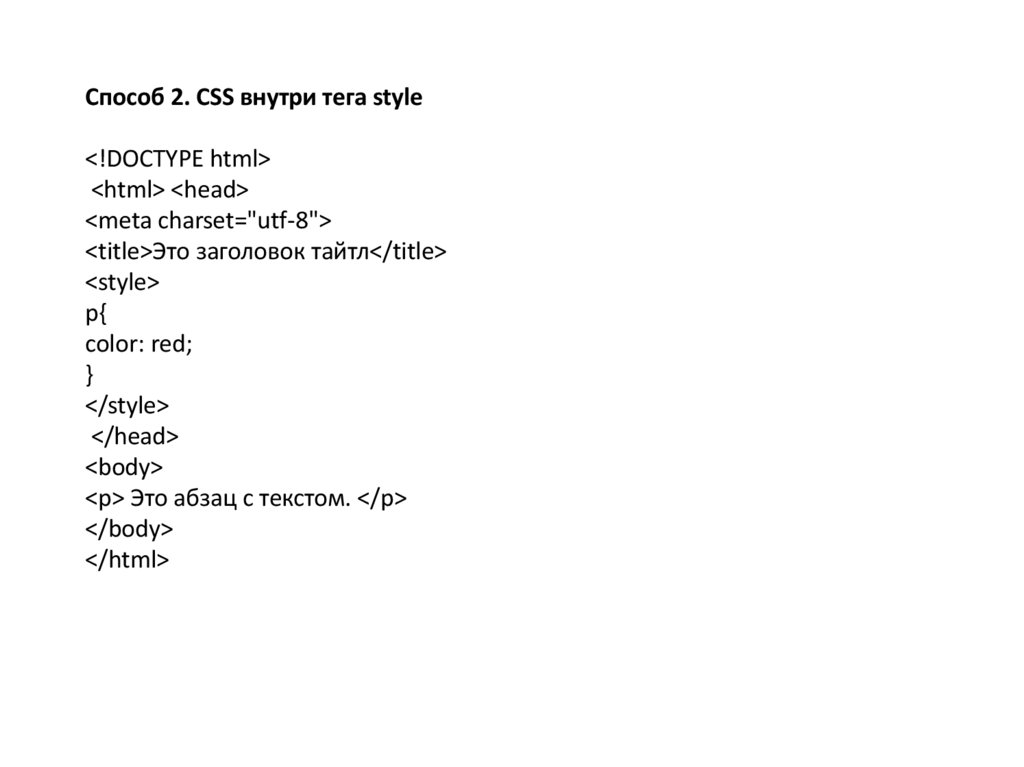 Способ 2. CSS внутри тега style<!DOCTYPE html>