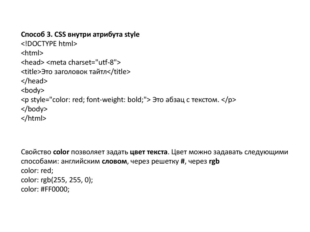 Способ 3. CSS внутри атрибута style<!DOCTYPE html>
