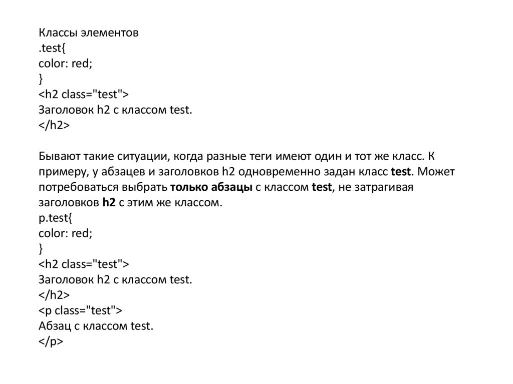 примеру, у абзацев и заголовков h2 одновременно задан класс test. Может