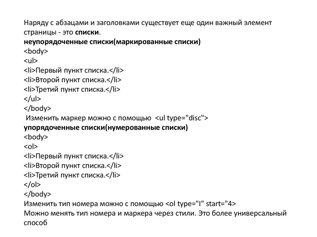 Наряду с абзацами и заголовками существует еще один важный элементстраницы - это списки.