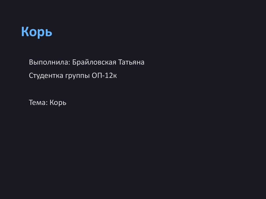 КорьВыполнила: Брайловская Татьяна