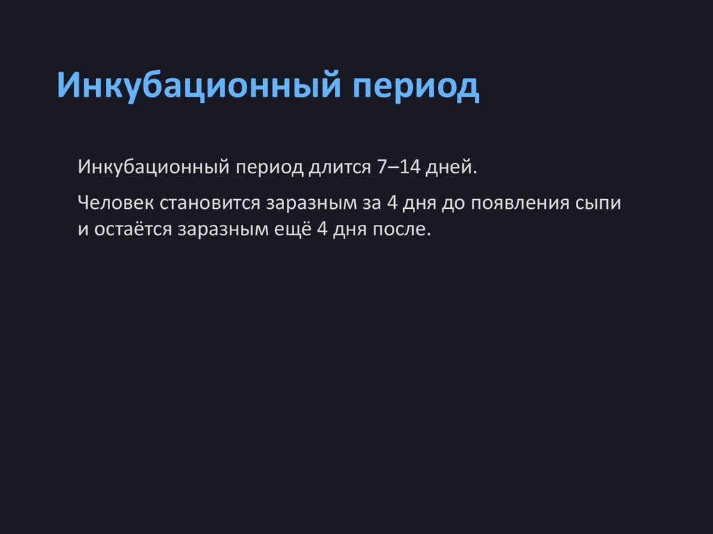 Инкубационный периодИнкубационный период длится 7–14 дней.
