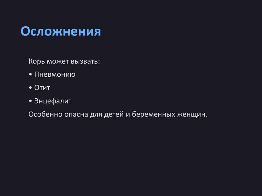 ОсложненияКорь может вызвать: