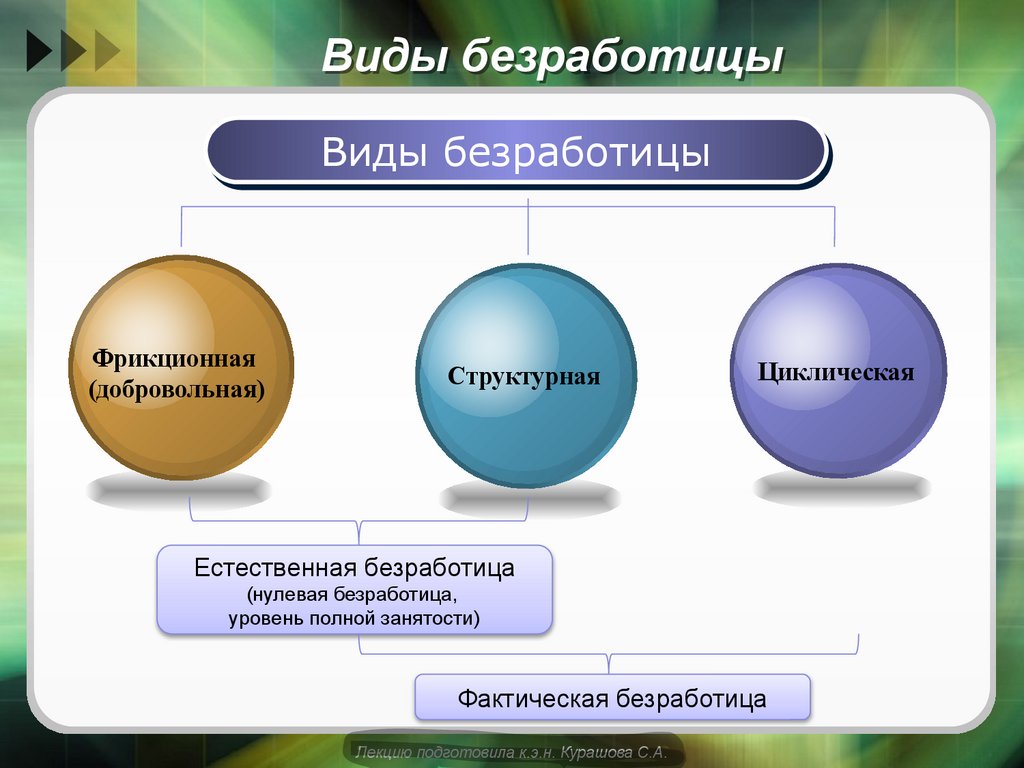 Естественная безработица = Фрикционная безработица + Структурная безработицауровень полной занятости или
