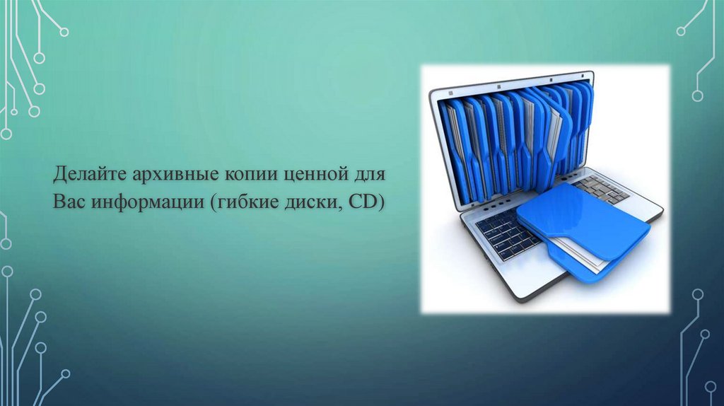 Делайте архивные копии ценной дляВас информации (гибкие диски, CD)
