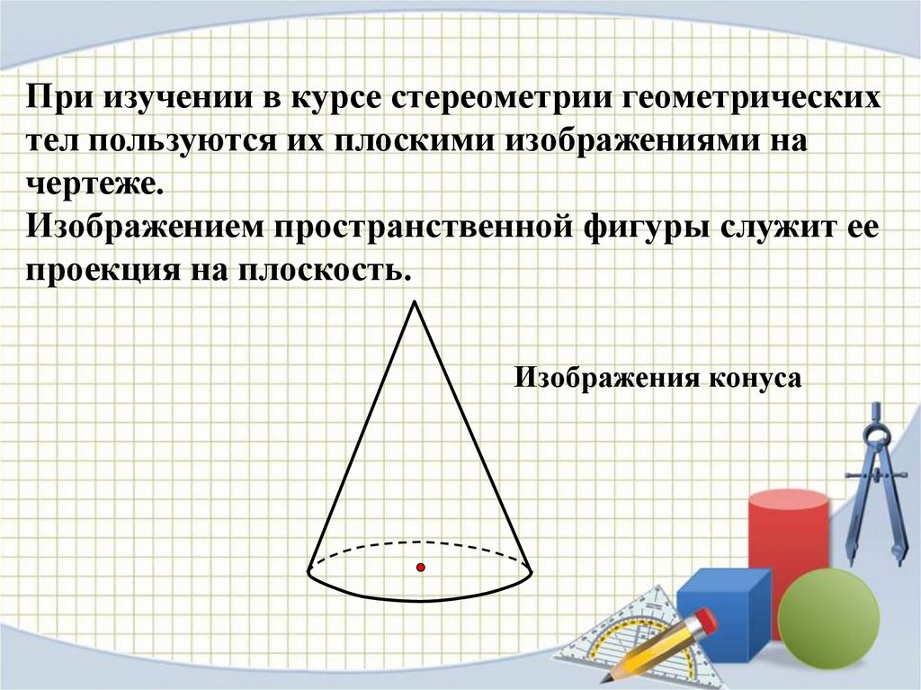 При изучении в курсе стереометрии геометрическихтел пользуются их плоскими изображениями на
