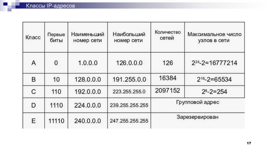 Классовая IP адресов