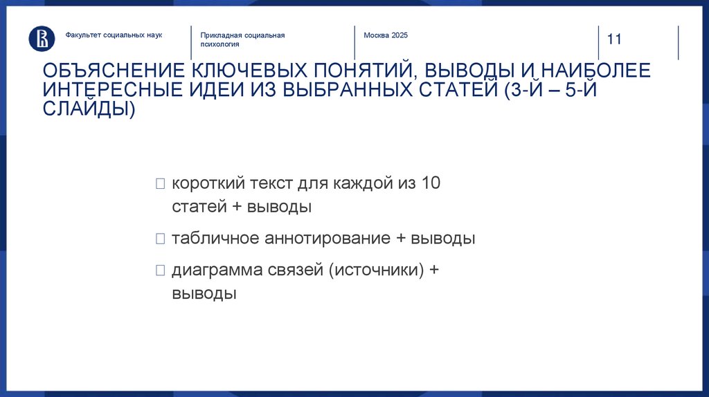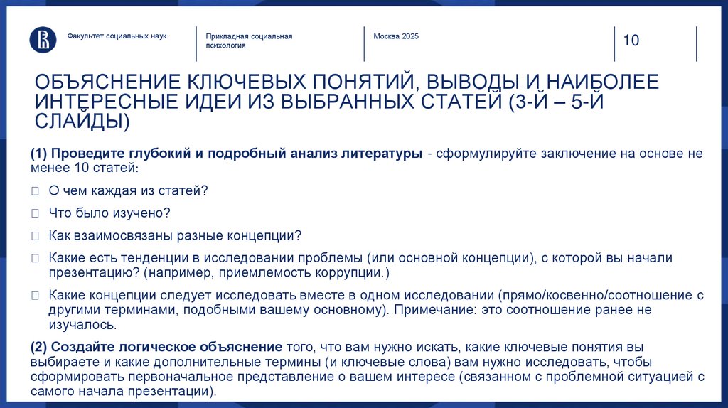 • В презентации должно быть не менее 10 релевантных статей по выбранной теме - список