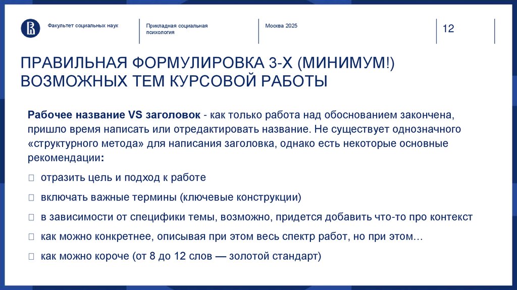 • Тема должна быть сформулирована с использованием психологических терминов.