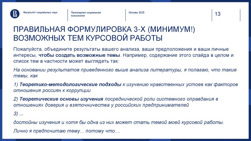 • ТРИ ФОРМУЛИРОВКИ ТЕМ ДЛЯ КУРСОВОЙ РАБОТЫ
