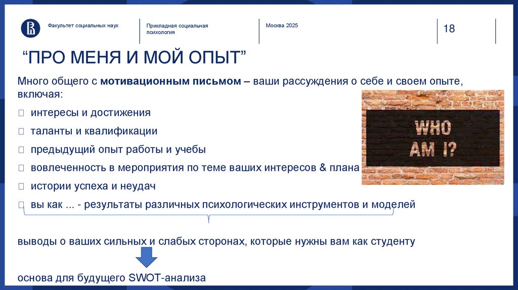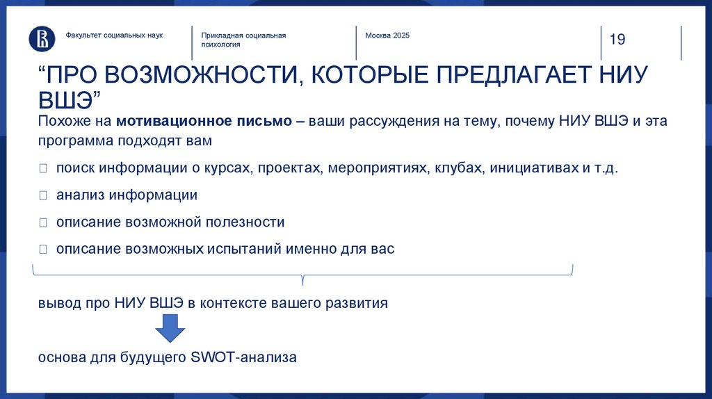 Похоже на мотивационное письмо – ваши рассуждения на тему, почему НИУ ВШЭ и эта