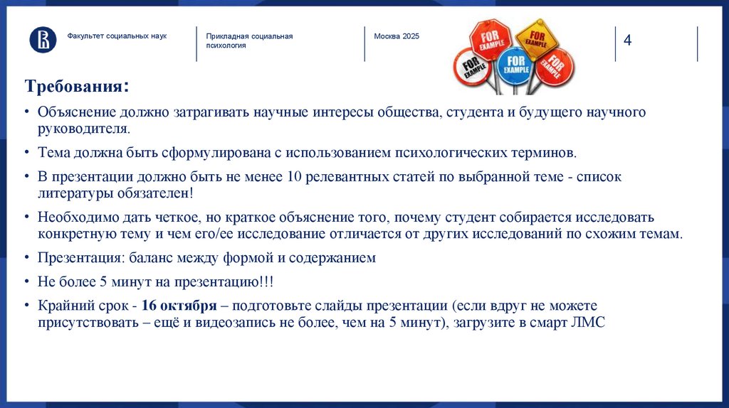 • Крайний срок - 16 октября – подготовьте слайды презентации (если вдруг не можете