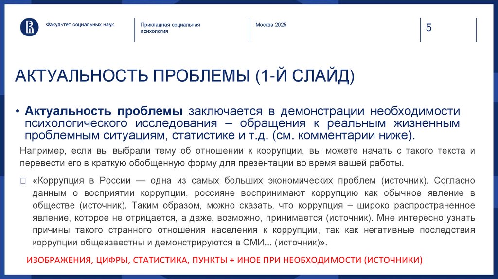 Например, если вы выбрали тему об отношении к коррупции, вы можете начать с такого текста и