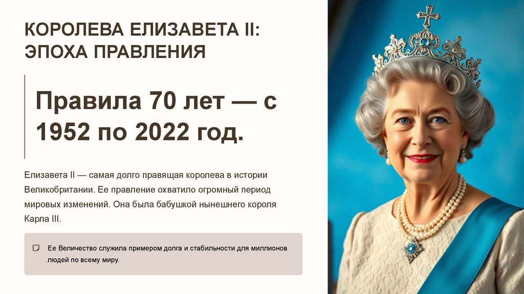 КОРОЛЕВА ЕЛИЗАВЕТА II:ЭПОХА ПРАВЛЕНИЯ