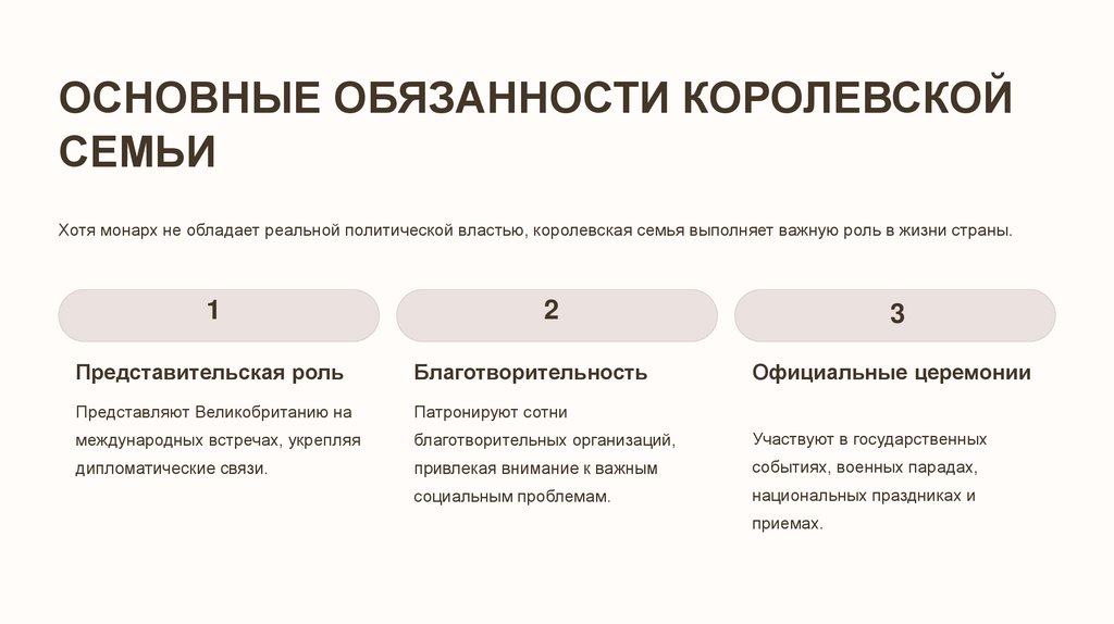 ОСНОВНЫЕ ОБЯЗАННОСТИ КОРОЛЕВСКОЙСЕМЬИ