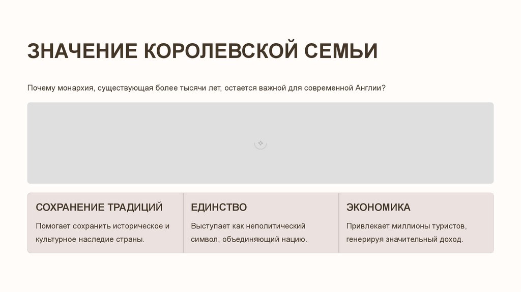 ЗНАЧЕНИЕ КОРОЛЕВСКОЙ СЕМЬИПочему монархия, существующая более тысячи лет, остается важной для современной Англии?