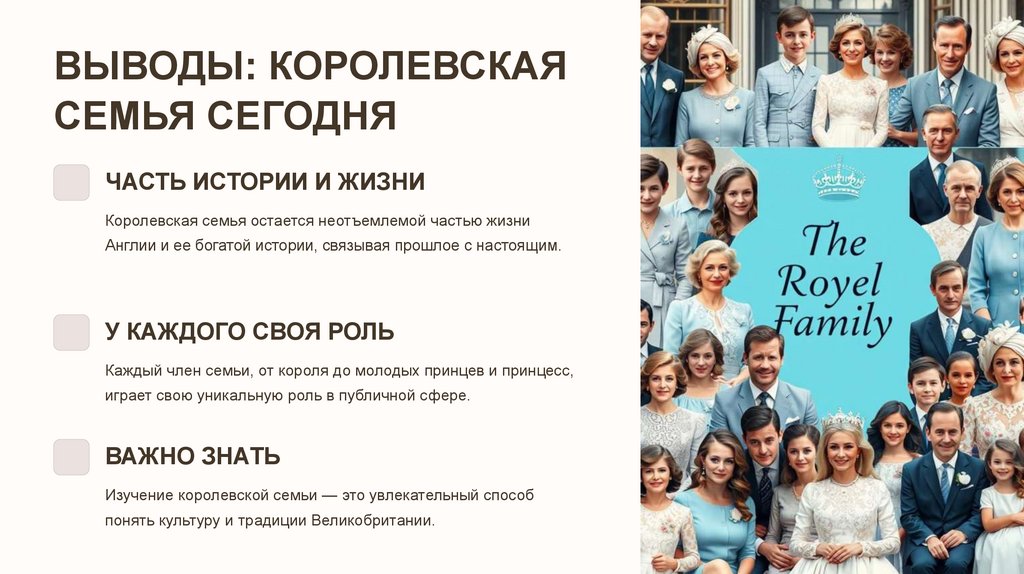 ВЫВОДЫ: КОРОЛЕВСКАЯСЕМЬЯ СЕГОДНЯ