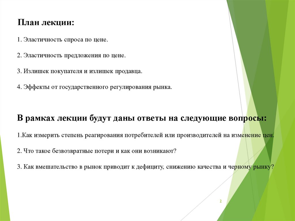 План лекции:1. Эластичность спроса по цене.