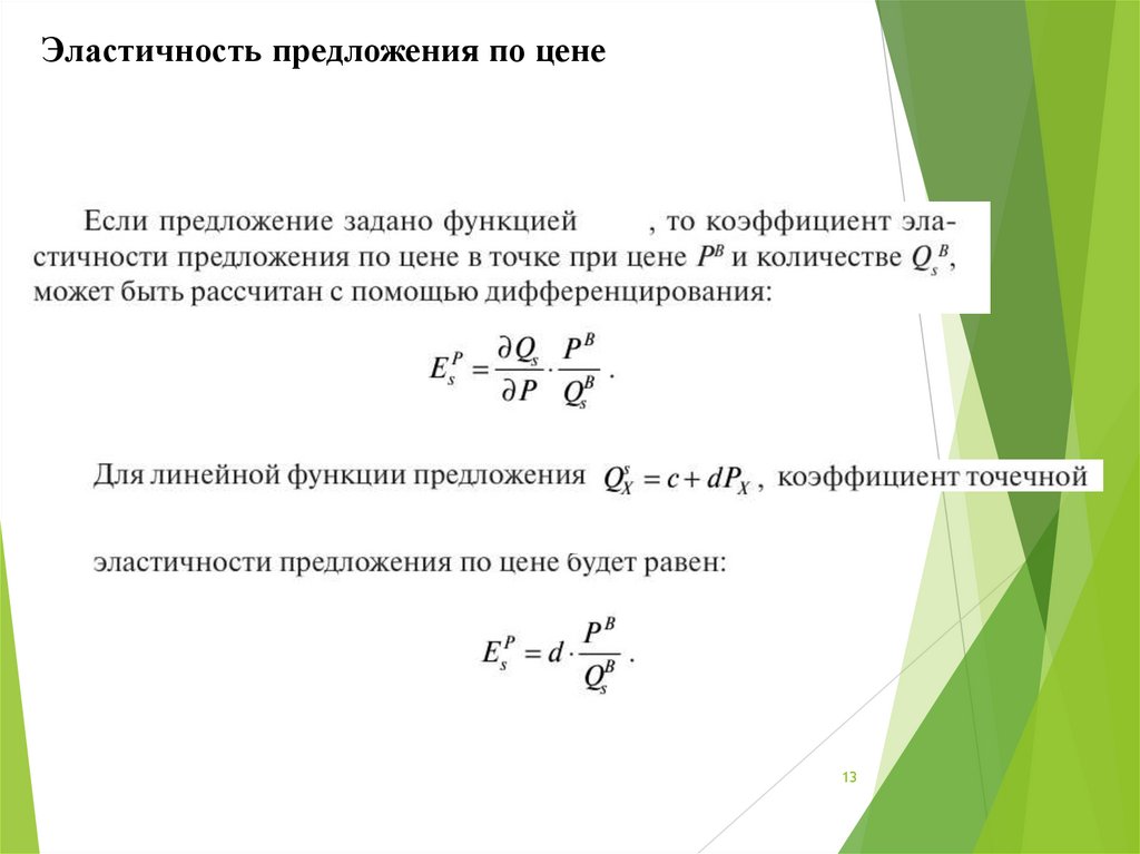 Эластичность предложения по цене13