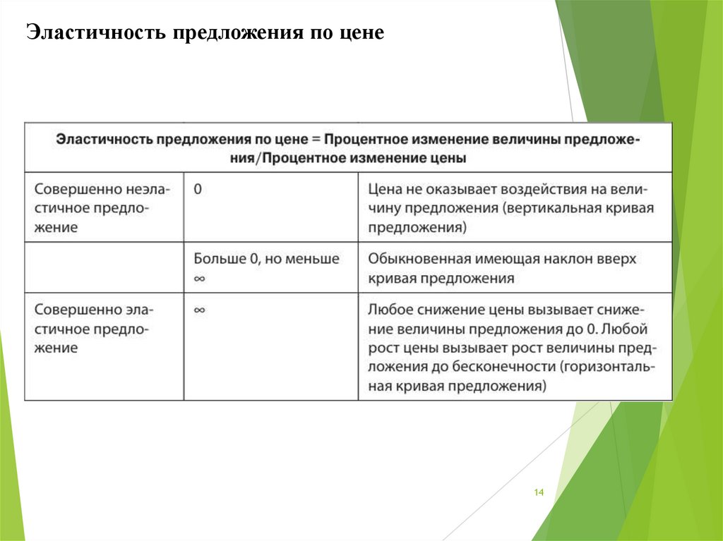 Эластичность предложения по цене14